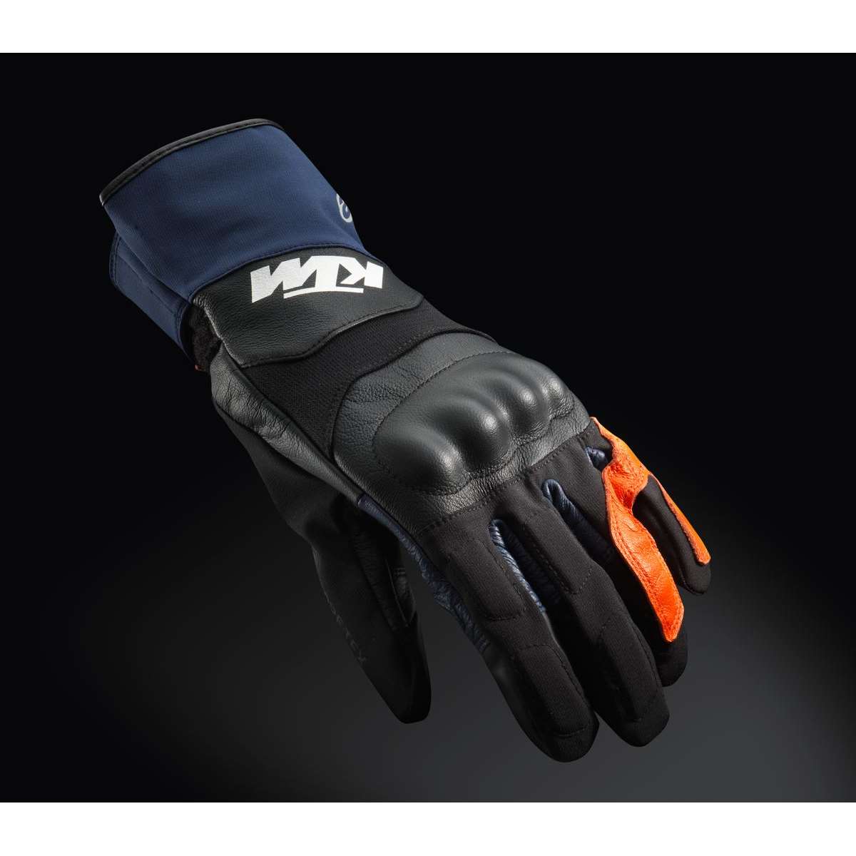 2in1 Ganzjahreshandschuh mit herausnehmbarem Innenhandschuh aus Thermofleece Gore-Tex® Ganzjahres- und Allwetterhandschuhe Exklusiv für KTM von Alpinestars Protektoren an Fingern und Knöcheln Weitenverstellung am Handgelenk durch Klettverschluss Handinnenfläche aus Leder Gore-Tex® Membrane mit GORE Grip Technologie